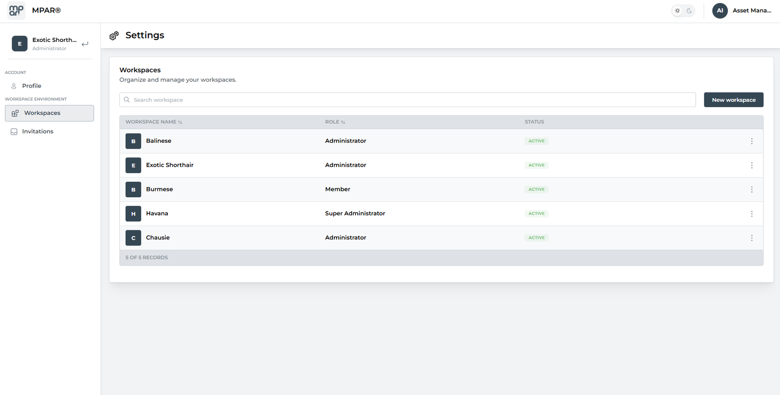 3. In the Workspaces module, open the menu for the relevant Workspace.