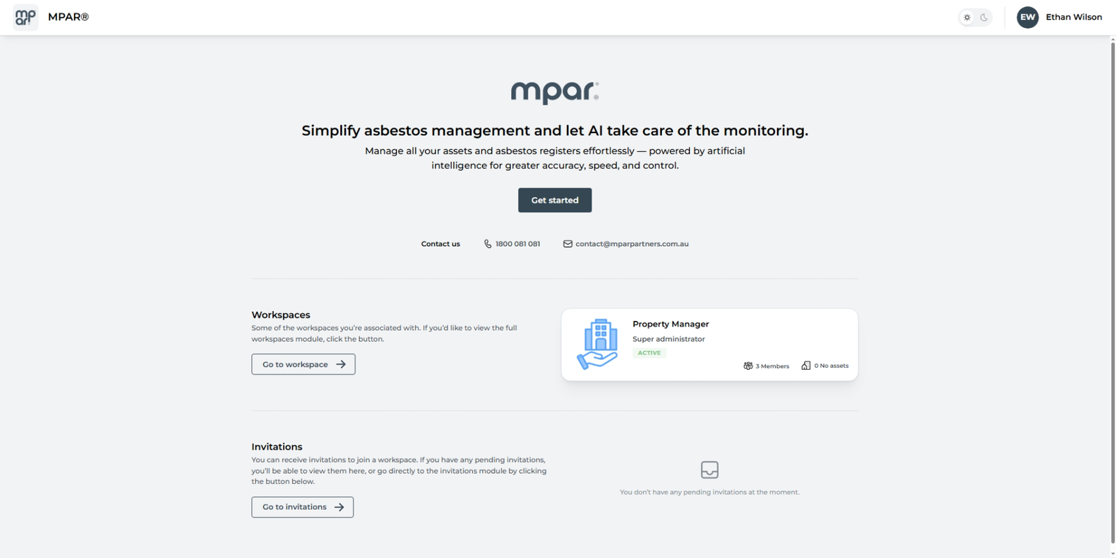 If you are not part of any Workspace, you will only be able to manage your account settings or start the process to create a new Workspace.